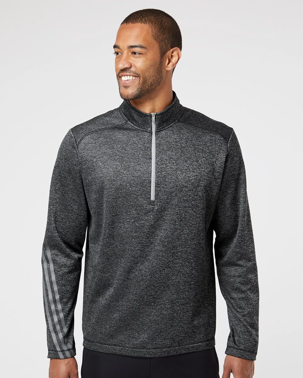 - Contrast color heat-transfer adidas logo on center back neck