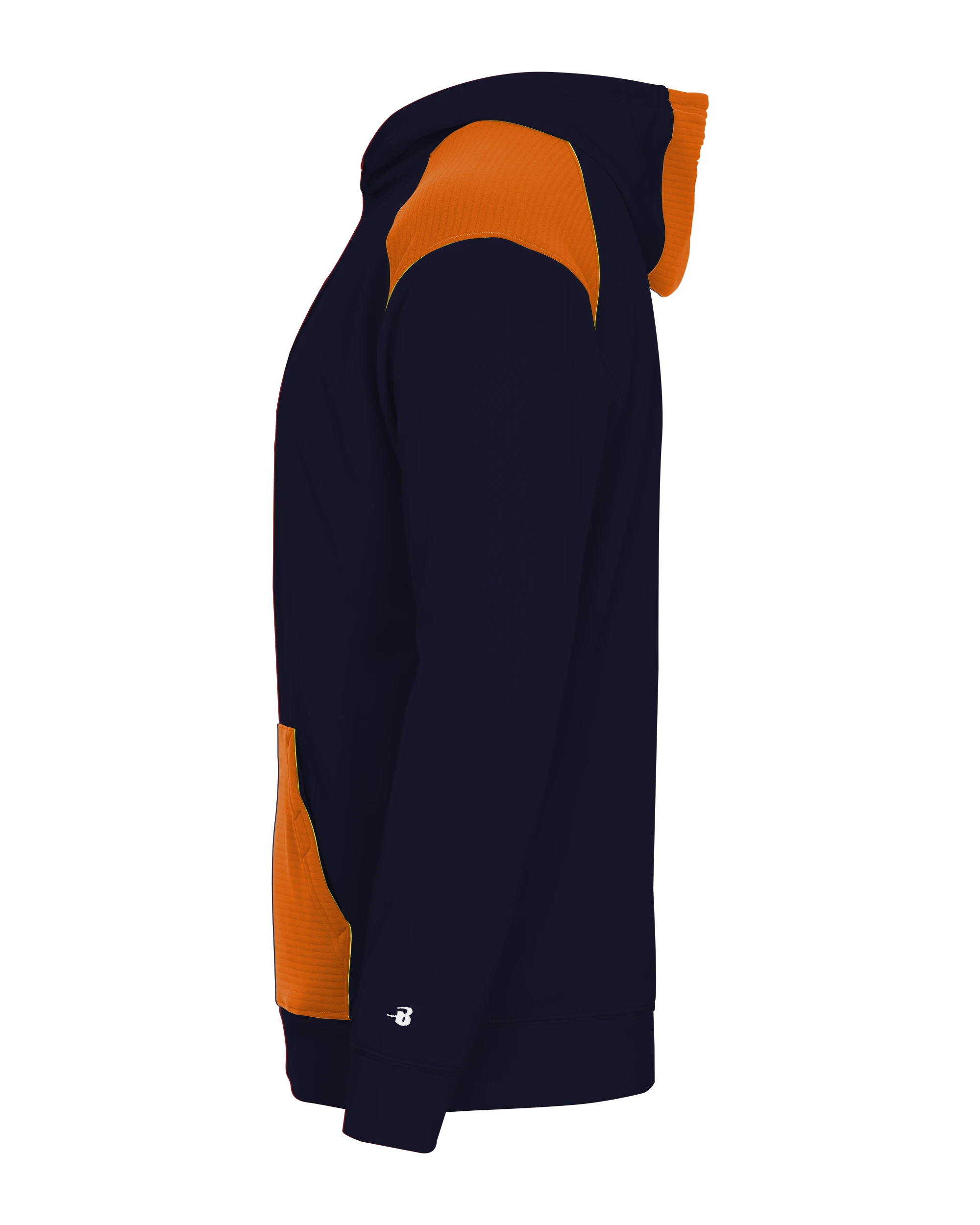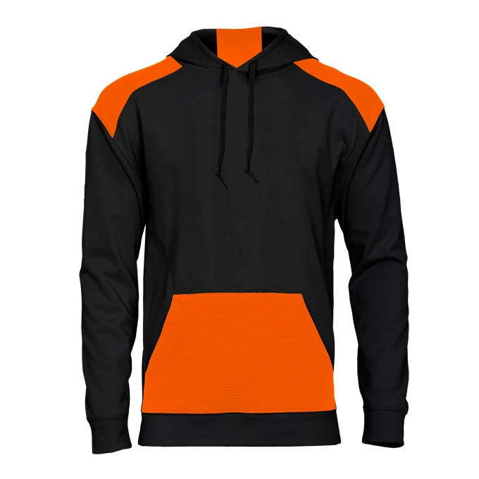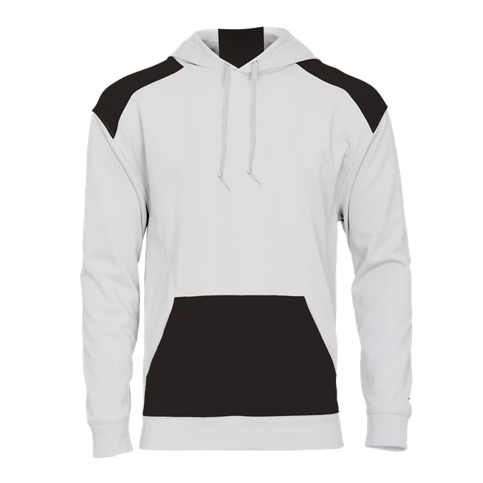 Men’s – Badger sport shoulder for maximum movement;Contrast textured hood insert, shoulders and front pocket;Front pouch pocket with two hook & loop closures and headset opening;Self-fabric cuffs & waistband;Embroidered Badger logo on left sleeve;Embroidered Badger logo on left sleeve – 100% Polyester moisture management/ antimicrobial performance fabric