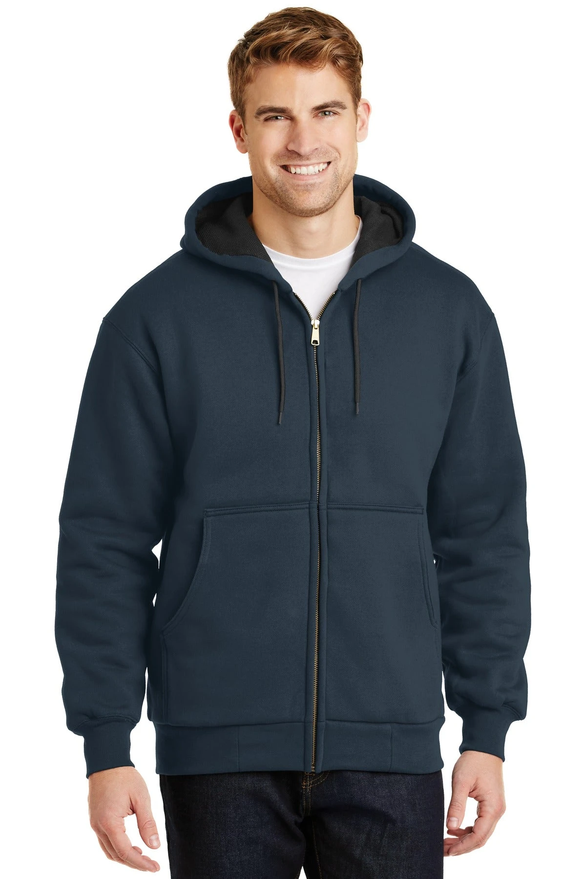 This durable hooded sweatshirt has a thermal lining to help keep you warm and comfortable in all types of weather.