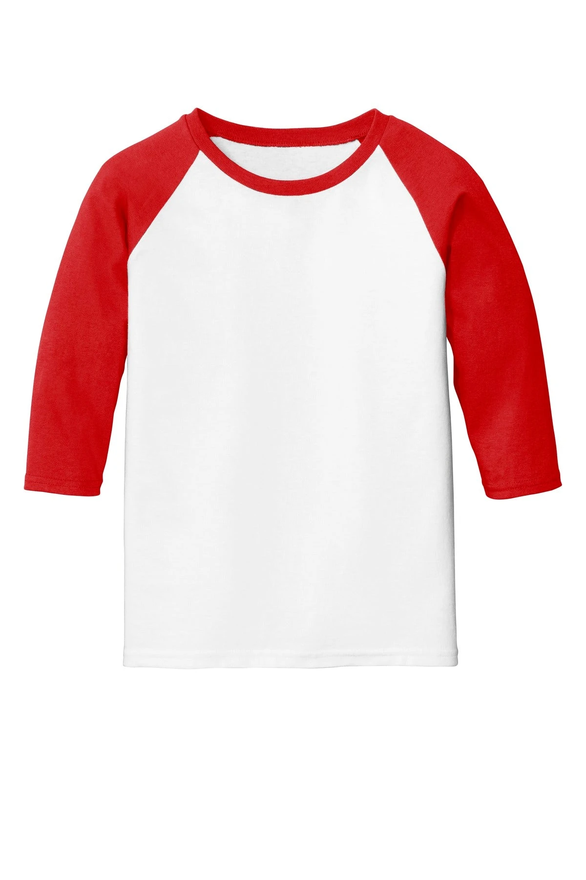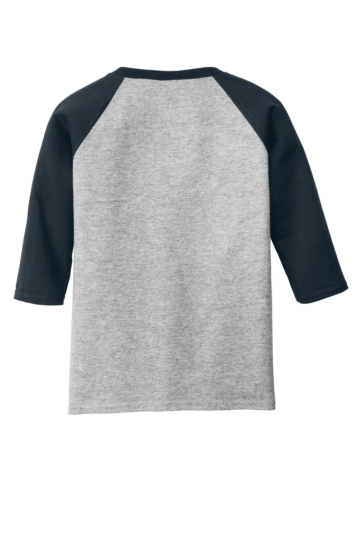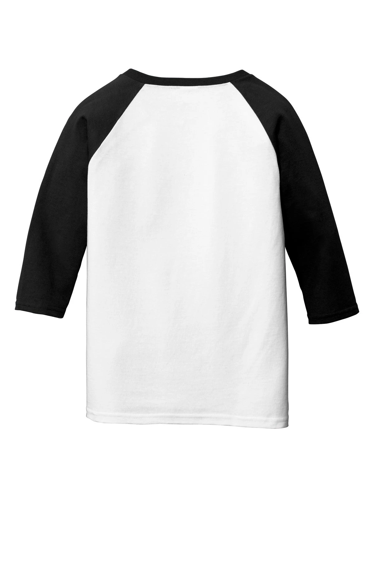 5.3-ounce 100% cotton Tearaway label Contrast color set-in collar and 3/4 raglan sleeve Single-needle topstitched back neck Double-needle sleeve hems and bottom hem/li>