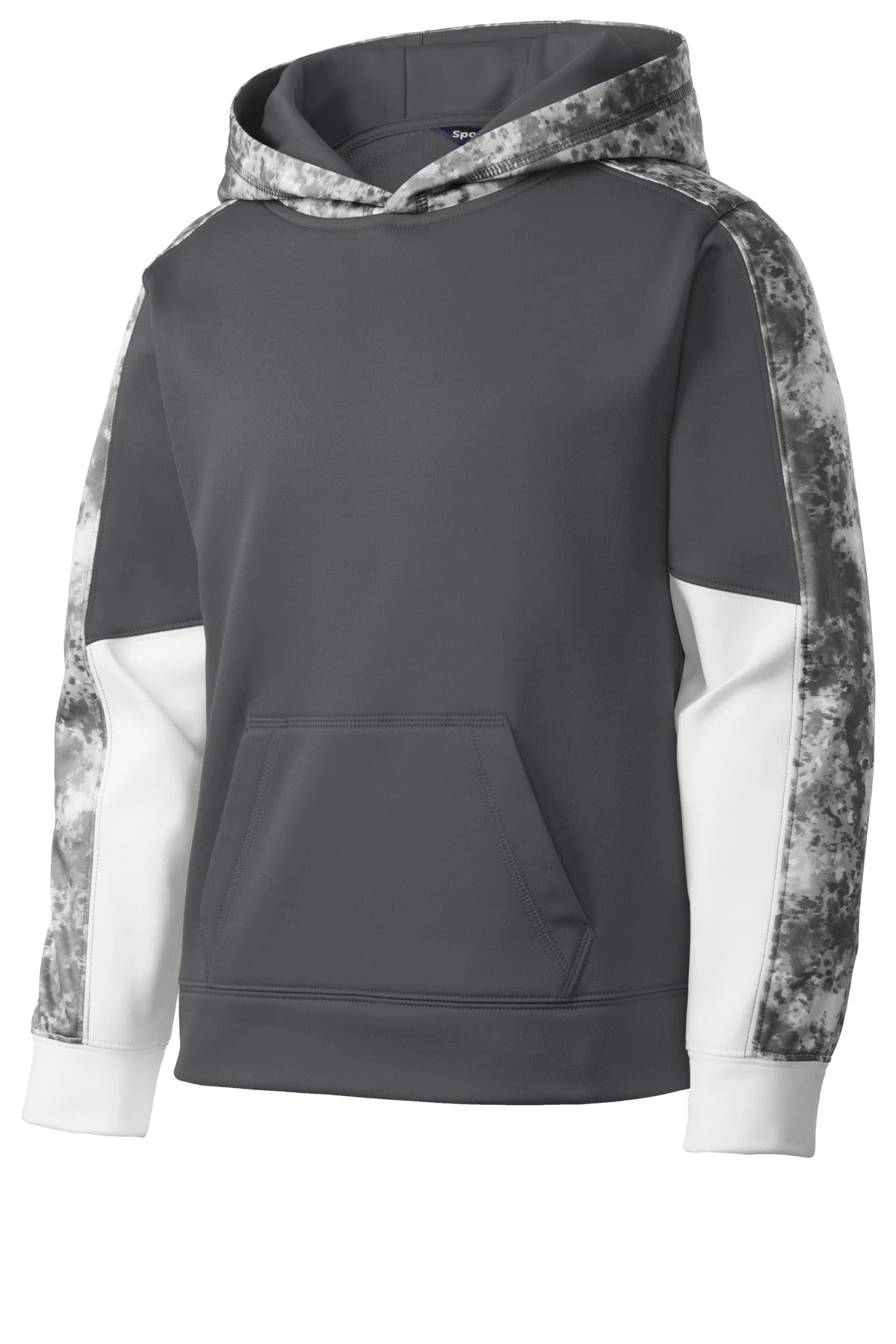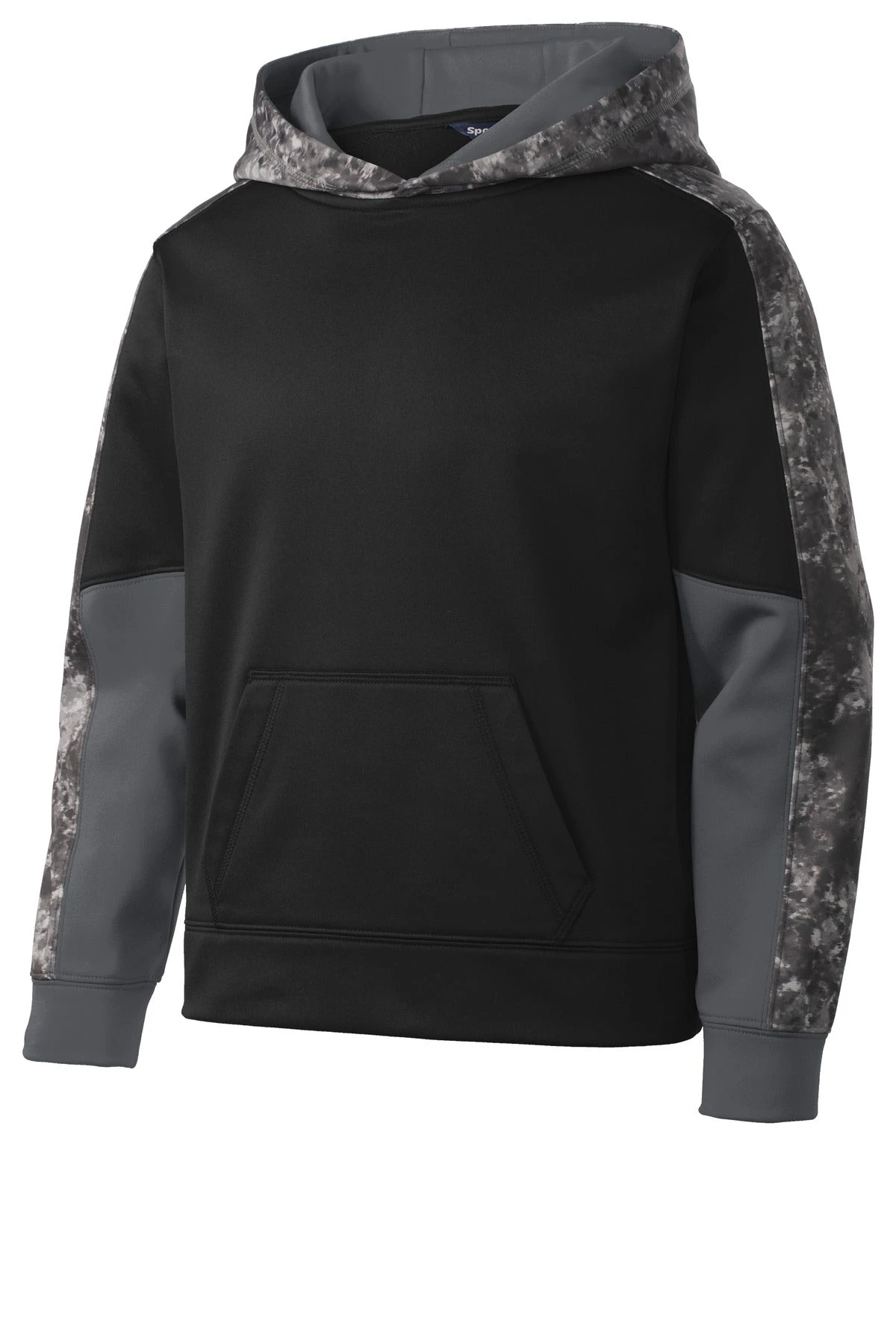 The granite-like Mineral Freeze print is strategically placed along with two solid team colors in this pullover that wicks moisture.